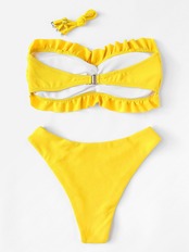 スマートなボトムにフリルがついたバンドゥトップスのコントラストがおしゃれ♡