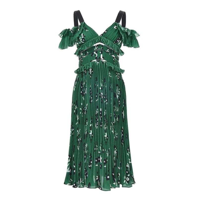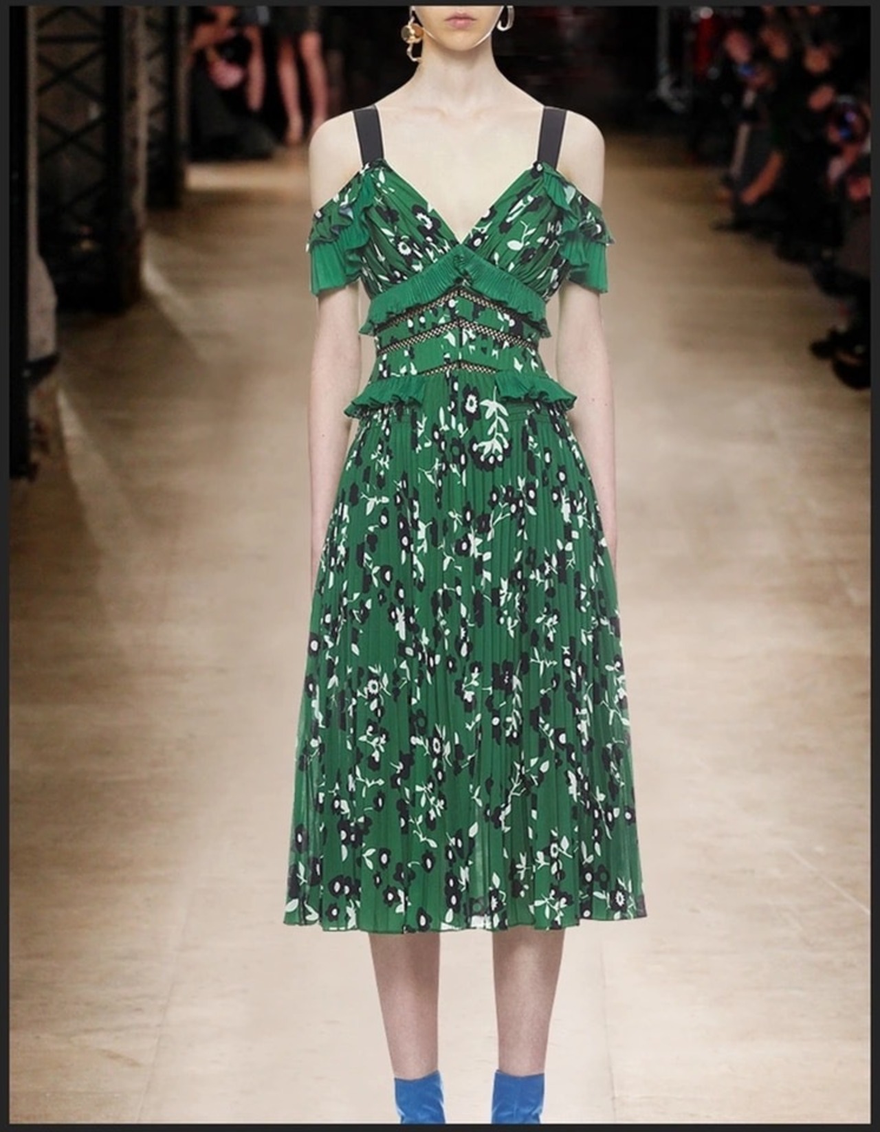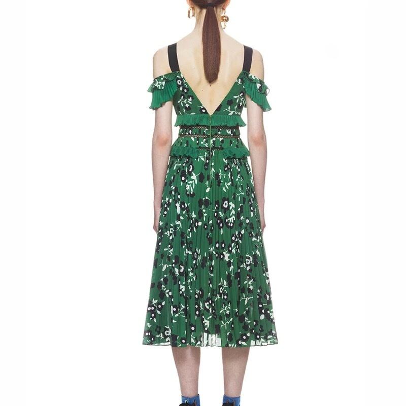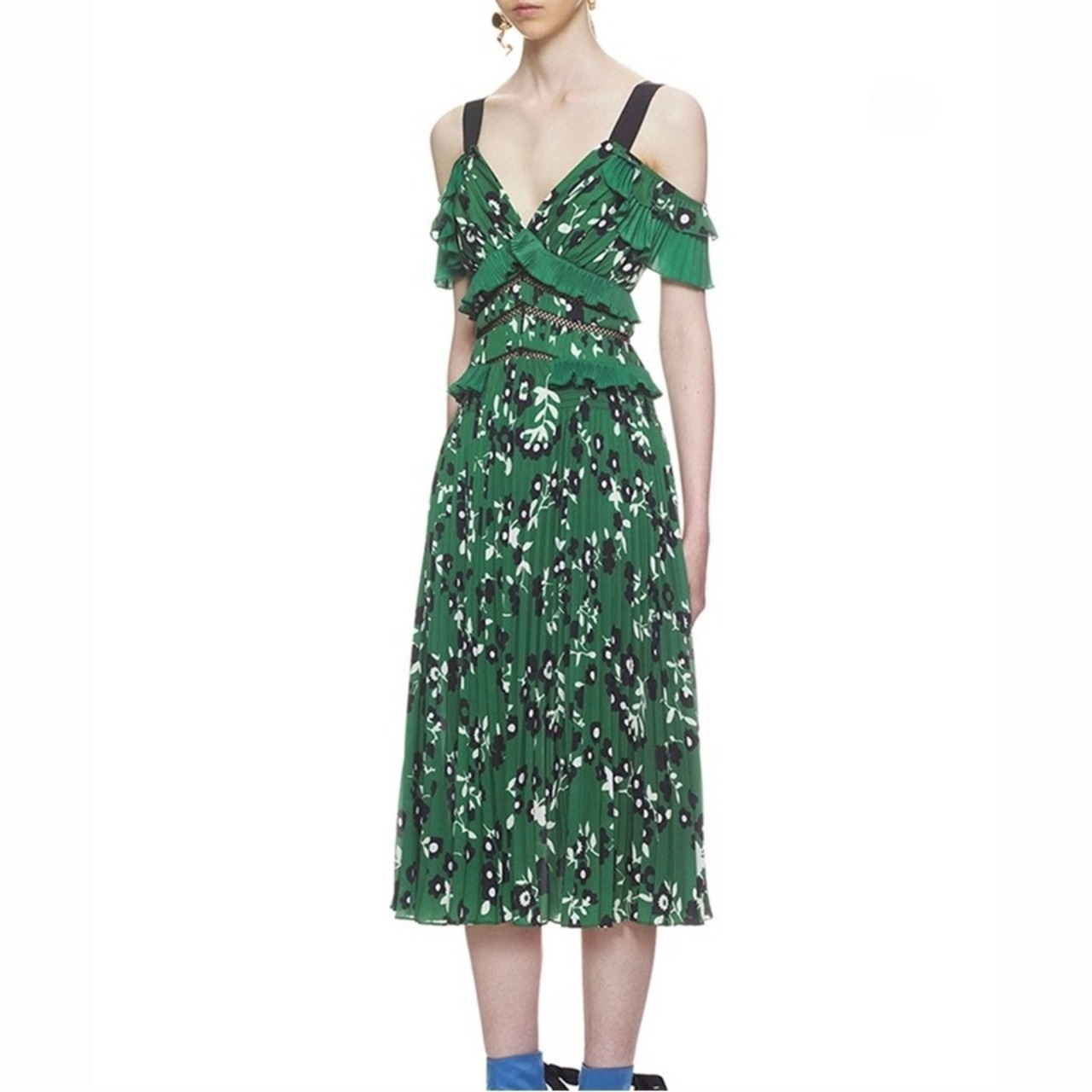 ホワイトの優しい花柄ながらも、深いVカットの胸元が
