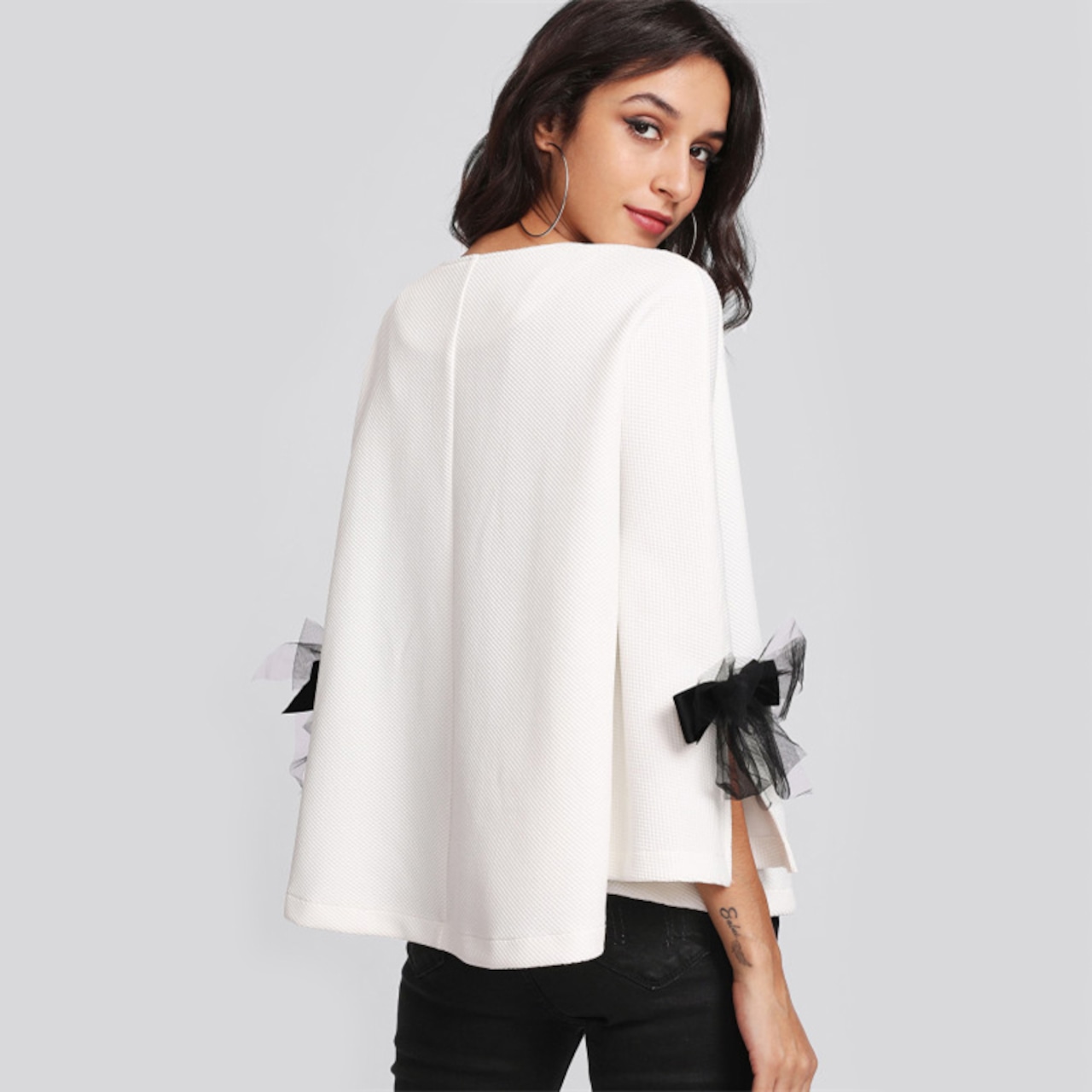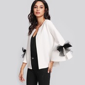 スリーブにあしらわれたブラックのリボンが引き締まった印象に。