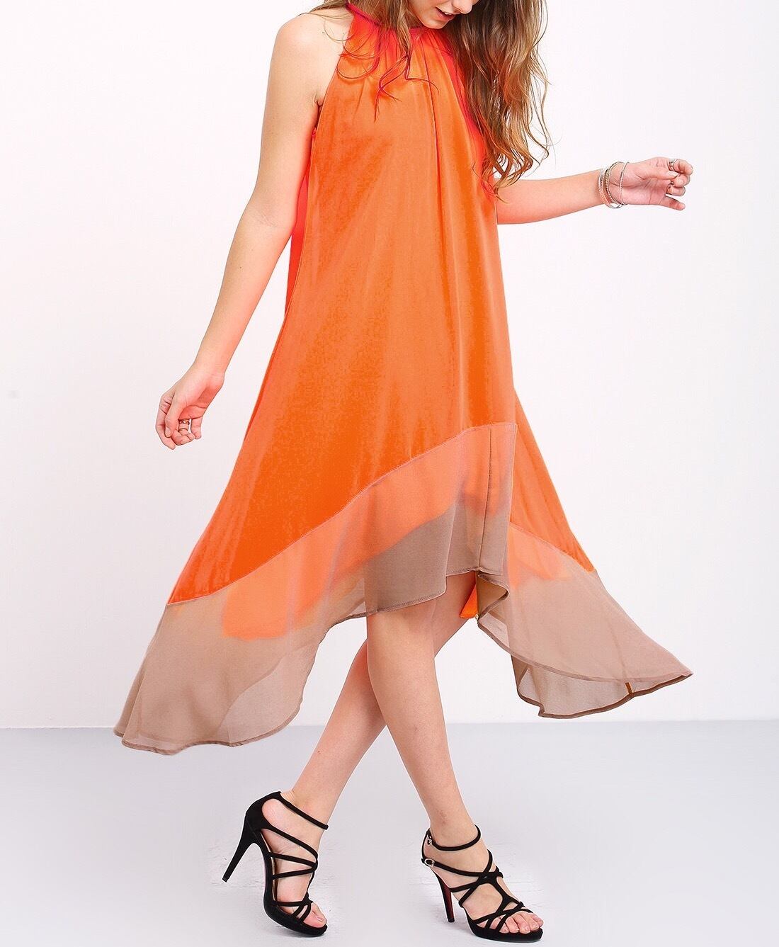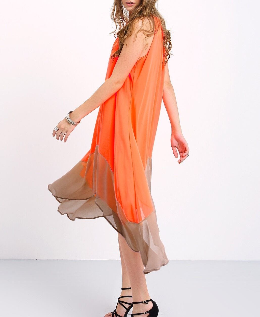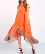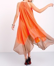 ふんわりシフォン素材のorange×grayのバイカラーワンピです♡