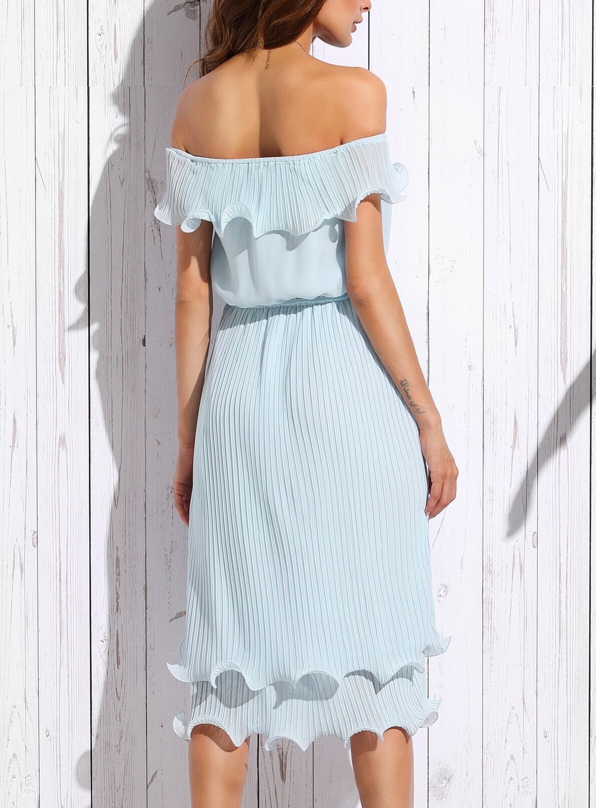 ビューティフルライトブルーオフショルミディワンピ