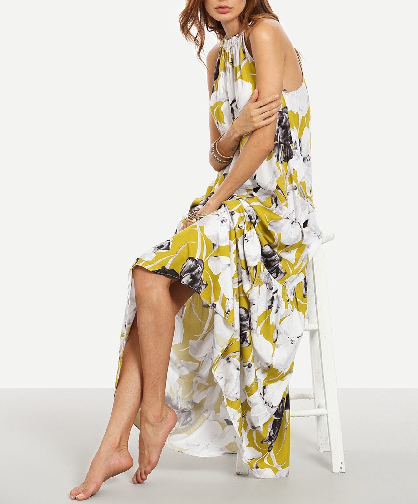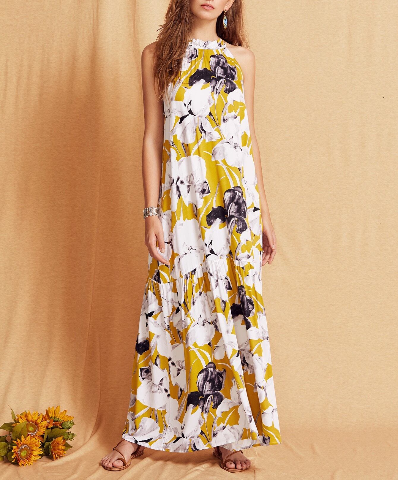 ホルターネック♡フラワープリントマキシ