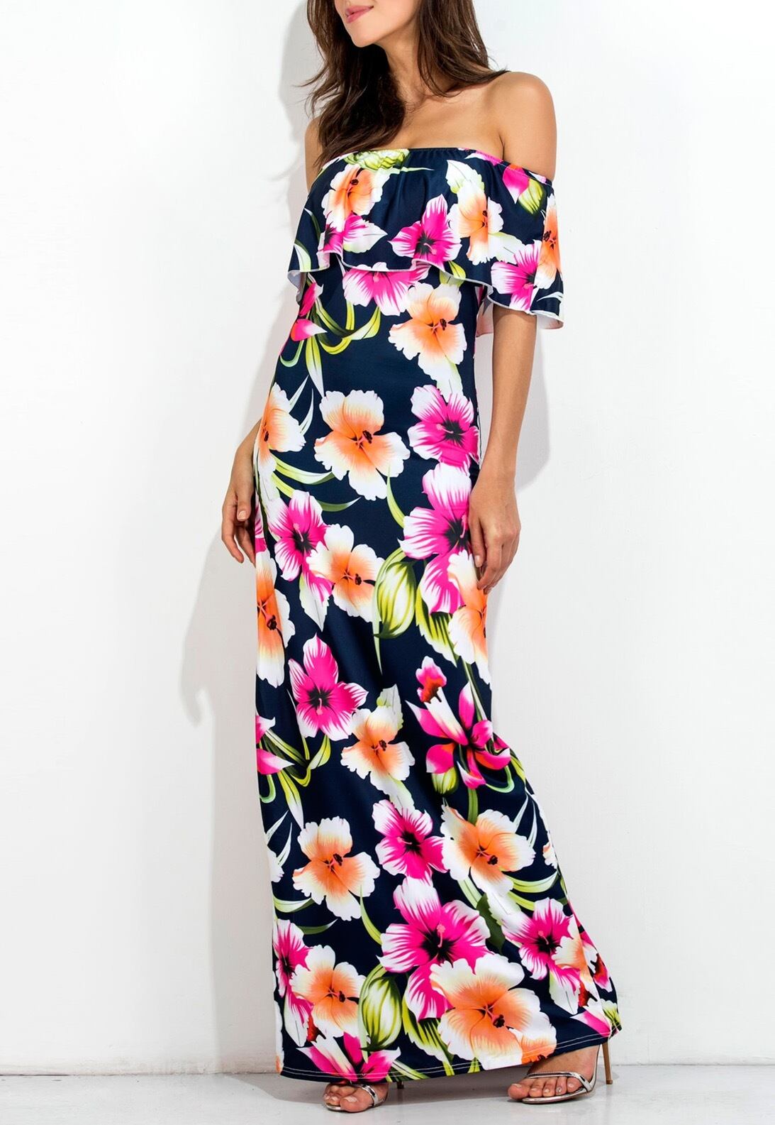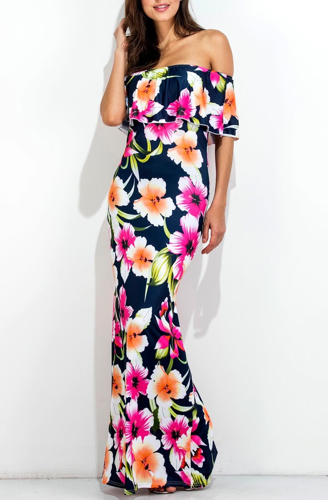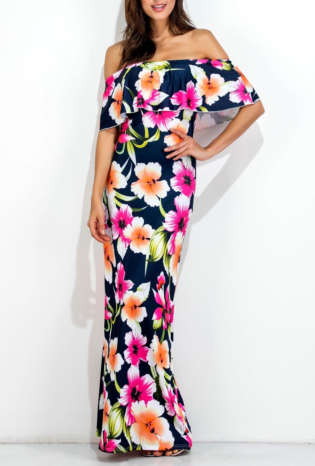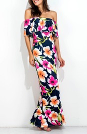 ハワイアンプリント♡オフショルマキシ
