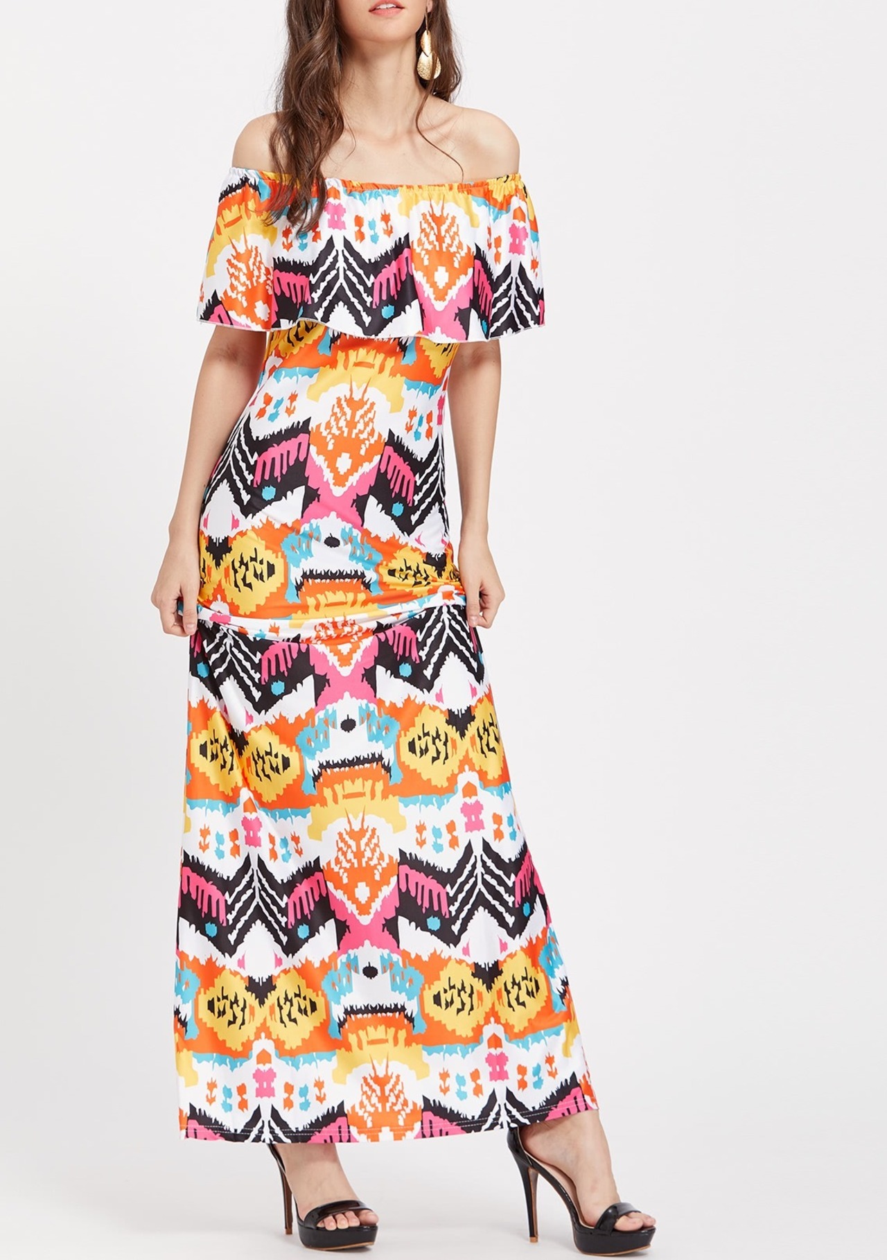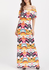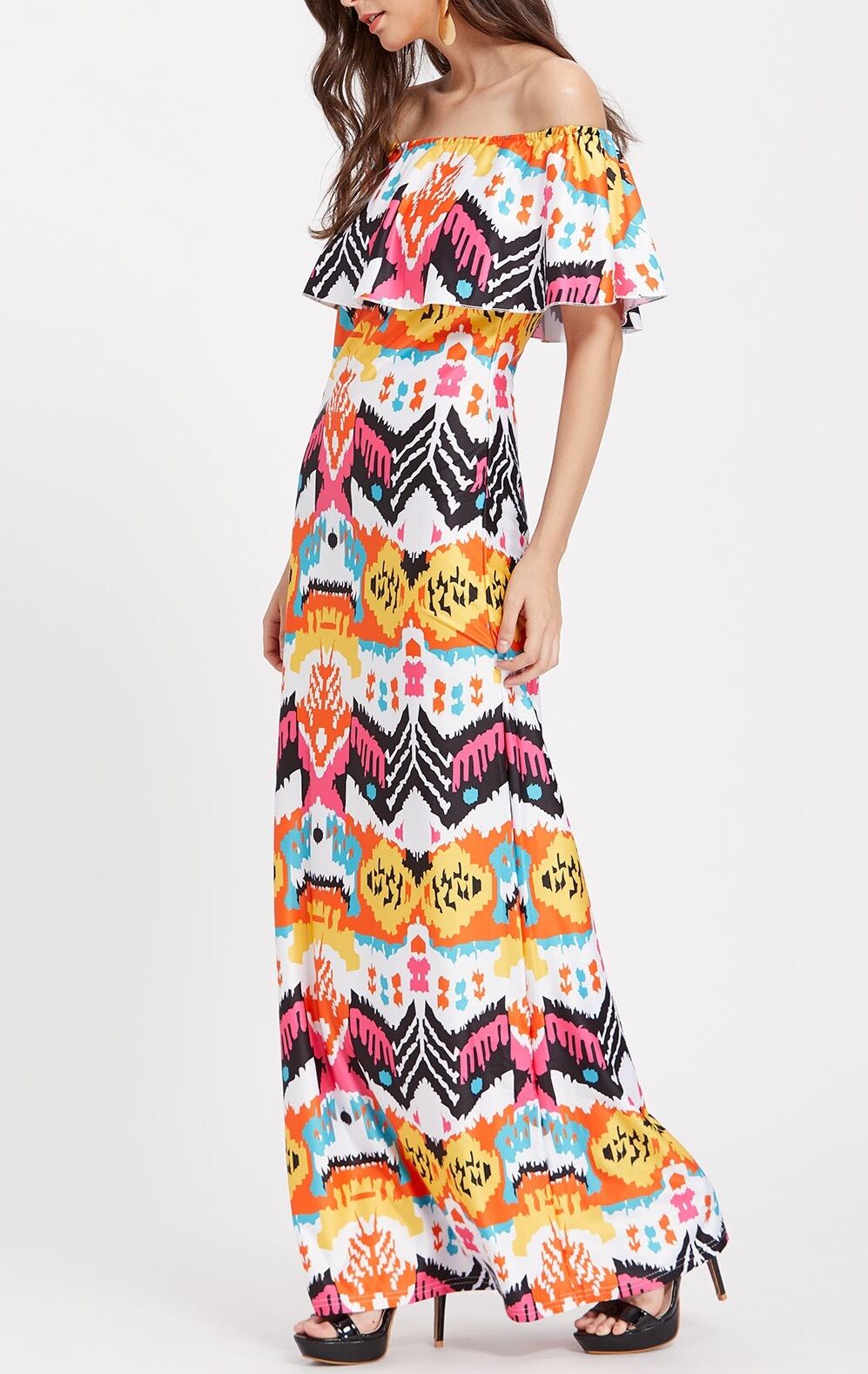 ボヘミアンプリント♡ビタミンカラーオフショルマキシ