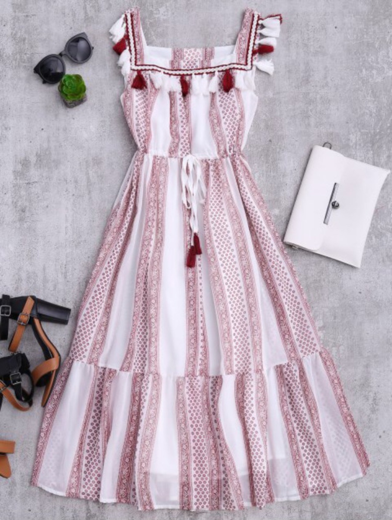 ミディ丈なので、ボヘミアン調のカジュアルラインに見えて、品ありコーデに見えます♡